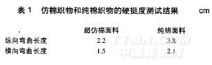 由表1可知,超仿棉織物的硬挺度更好。