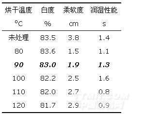 很明顯,采用90oC左右對(duì)整理織物進(jìn)行烘干,織物將具有最佳的柔軟整理效果、白度水平和適宜的烘燥效率。