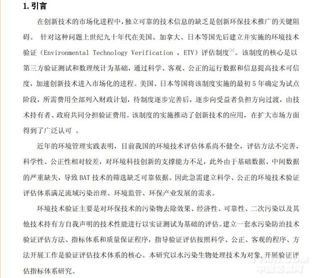 水污染防治生物處理技術(shù)驗(yàn)證評(píng)估指標(biāo)體系研究