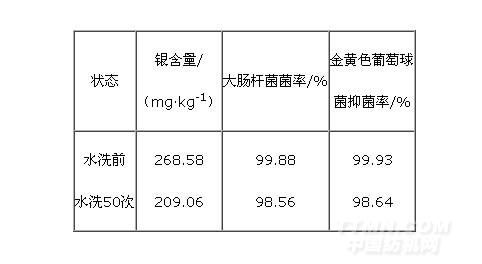 表1 仙人掌納米銀整理織物洗滌前后的銀含量及抑菌率