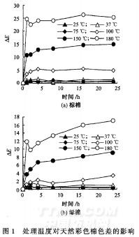 較重要的因素。短時(shí)問(特別是2~3 min)內(nèi)高溫條 件對天然彩色棉色澤的影響本文并未涉及,這有待 進(jìn)一步的研究。