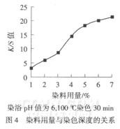 由圖4可見,隨著染料用量的增加,染色深度亦增加,總體提升性能較好,說明靛藍對聚乳酸織物可以染得淺深的范圍較大,靛藍對聚乳酸織物的染深性能較好.