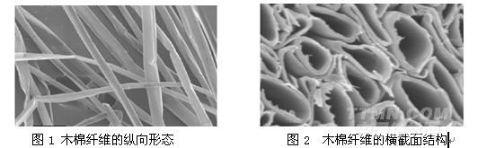 木棉纖維是錦葵目木棉科內幾種栽培種植物果莢內附著的纖維,屬單細胞纖維,與棉纖維相同[1]。但棉纖維是種子纖維,由種子的表皮細胞生長而成,纖維附著于種子上。而木棉纖維是果實纖維,附著于木棉蒴果殼內壁,由內壁細胞發(fā)育、生長而成。木棉纖維在蒴果殼體內壁的附著力小,分離容易。目前應用的木棉纖維主要指木棉屬的木棉種、長果木棉種和吉貝屬的吉貝種這三種植物果實內的棉毛。