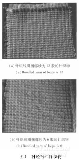 利用天津工業(yè)大學(xué)自行研制的6針襯經(jīng)襯緯橫機(jī)編織襯經(jīng)襯緯組織,編織工藝參數(shù)如下:聚乳酸與竹原纖維的根數(shù)比為2∶1(質(zhì)量比約為55%∶45%),襯經(jīng)、襯緯總數(shù)為24根合股,針織線圈捆綁紗分別為12根和6根??椢锶鐖D1所示。