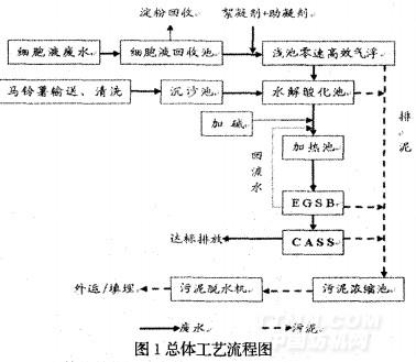 在淀粉生產(chǎn)過程中產(chǎn)生的生產(chǎn)廢水含有淀粉、糖類、蛋白質(zhì)、有機酸等溶解性有機物質(zhì),小顆粒淀粉、纖維等不溶性細(xì)小顆粒有機物及泥砂等無機物。為了減輕后續(xù)處理構(gòu)筑物的處理負(fù)荷,保護后續(xù)處理設(shè)施,應(yīng)在馬鈴薯輸送、清洗排放的廢水預(yù)處理處理設(shè)施的前端安裝旋轉(zhuǎn)沉沙池、格柵等,以截留原污水中較大的懸浮物或漂浮物、去除廢水中泥沙。而在主生產(chǎn)線排放細(xì)胞液廢水中,需要通過沉淀、淺層氣浮等物理方法去除懸浮物、膠體物質(zhì)及部分有機物,同時回收植物蛋白飼料等川。