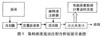 該方法的特點(diǎn)是染液可先經(jīng)過(guò)定量稀釋?zhuān)龠M(jìn)入分光光度計(jì)測(cè)定吸光度,從而可以測(cè)試濃度較高的染液,如軋染的高濃度染液。但是,由于測(cè)試的染液經(jīng)過(guò)稀釋?zhuān)荒茉俜祷厝驹≈校虼藭?huì)對(duì)浸染工藝的染料用量和浴比造成影響。另外,稀釋混合過(guò)程需要一定時(shí)間,因此監(jiān)測(cè)的時(shí)間分辨率也會(huì)受到一定限制。