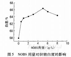 圖5NOBS用量對(duì)織物白度的影響