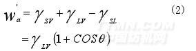 wa是液體與固體之間的粘合功,條件是液體和固體都與該液體的蒸汽達到平衡。液體的內(nèi)聚功wc為: