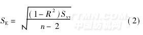為了考察回歸的精密度[5],采用下式計算剩余標(biāo)準(zhǔn)離差SE: