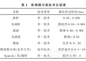 3.3 陶瓷膜分離技術(shù)與各種膜分離技術(shù)的比較