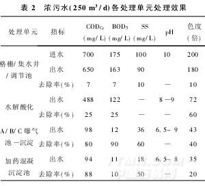 表3 輕污水(750 m3/d)各處理單元處理效果