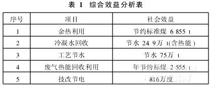 通過實施余熱回收利用,產(chǎn)生的綜合效益見表1。