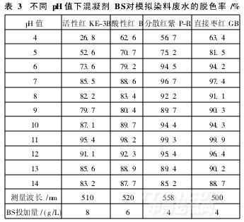 2.1.1pH值對混凝劑BS脫色效果的影響