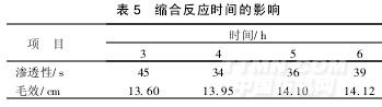由表5可以看出,縮合反應時間為4 h,所合成的試劑滲透性和毛效均較好,故選擇縮合反應時間為4 h。