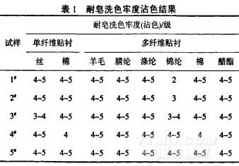 表I耐皂洗色牢度沾色結果