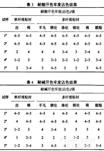 種(酸汗及堿汗),其pH值分別為5.5、8.0,沾色牢度結(jié)