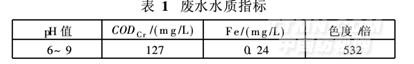 廢水取自浙江海寧某紗線染色企業(yè)二沉池出水,平均水質(zhì)指標(biāo)如表1所示。