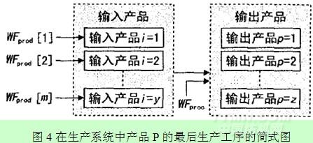 步進式累積法該法是計算產(chǎn)品水足跡的通用方法,它基于生產(chǎn)該產(chǎn)品所經(jīng)最后工序所需輸入產(chǎn)品的水足跡和工藝水足跡。假設有許多輸入產(chǎn)品而只有單個輸出產(chǎn)品,則輸出產(chǎn)品的水足跡為輸入產(chǎn)品水足跡之和,再加上工藝水足跡。另一種情況為有單個輸入產(chǎn)品和許多輸出產(chǎn)品,則需要將輸入產(chǎn)品的水足跡按一定比例(按輸出產(chǎn)品價值或質(zhì)量)分配到各個輸出產(chǎn)品中去。還有一種比較普遍的情況是,有y種輸入產(chǎn)品和種輸出產(chǎn)品來計算產(chǎn)品p的水足跡,如圖4所示。