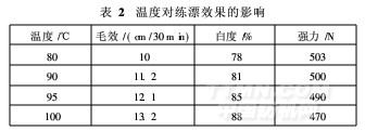 根據(jù)表1,采用3#處方,在不同溫度下進(jìn)行練漂(練漂時(shí)間60 min).