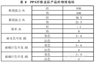 迷彩印花PPS纖維織物的物理指標(biāo)見表8。