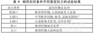 主要對(duì)刮刀類型、壓力與角度,對(duì)花精度,花版的排序進(jìn)行研究。先對(duì)不同類型的刮刀做了刮印試驗(yàn),其結(jié)果如表9所示。