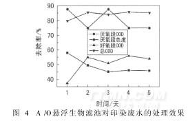 2.3 A/O懸浮生物濾池對(duì)實(shí)際印染廢水的處理效果