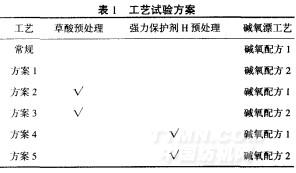 草酸處理(草酸2L,40℃,l0min)一熱水洗(75~80℃,2min)一溫水洗(60~70℃,2min)一室溫水洗.