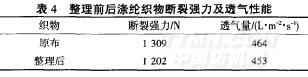 2.3拒水拒油整理對滌綸織物斷裂強(qiáng)力及透氣性能的影響