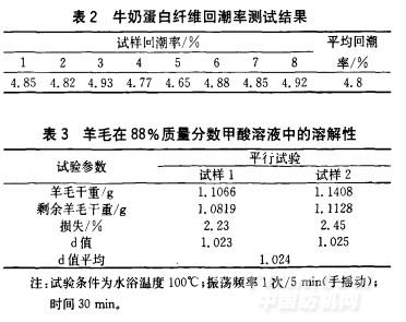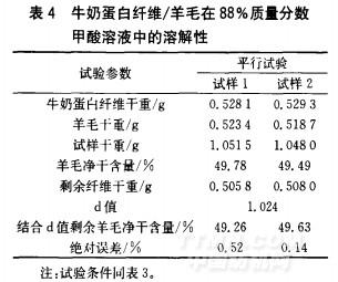 2.3.2牛奶蛋白纖維/羊毛在88%質(zhì)量分?jǐn)?shù)甲酸溶液中的溶解性