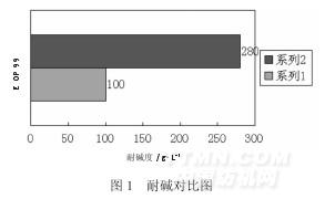 OP99成分為異辛醇聚氧乙烯醚磷酸酯,屬陰離子表面活性劑,具有良好的耐酸、堿、硬水和無機(jī)鹽、耐高溫特性,經(jīng)過大量實(shí)驗(yàn)發(fā)現(xiàn),異辛醇磷酸酯具有較高的滲透力,極低的泡沫,但耐堿度只能達(dá)到100g/LNaOH,而異辛醇聚氧乙烯醚磷酸酯具有極高的耐堿力(耐堿度可達(dá)280g/LNaOH),但弱堿條件下的滲透力一般,泡沫一般,采用兩者復(fù)配的方法,取得了較高的耐堿力和滲透力,極低泡沫。結(jié)果見圖1、表1、表2。