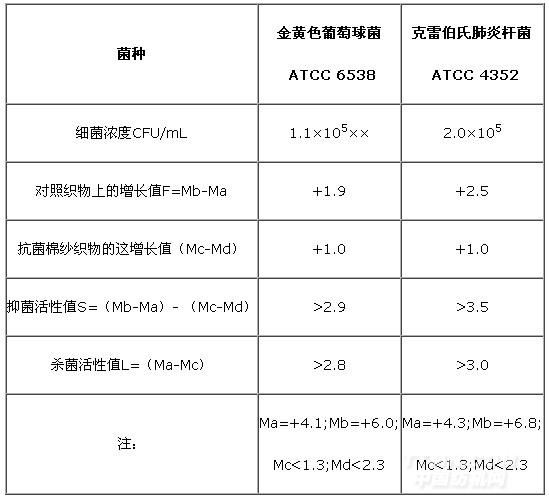 從上表可看出,大貨生產(chǎn)的抗菌棉紗的抑菌活性值分別為:金黃色葡萄球菌:>2.9;克雷伯氏肺炎桿菌:>3.5。根據(jù)JIS L-1902 2008標準的要求,只要抑菌活性值大于2.0,就說明抗菌棉紗具有抗菌性能,從測試結(jié)果看,經(jīng)過抗菌整理劑A處理的抗菌棉紗具有良好的抗菌性能。