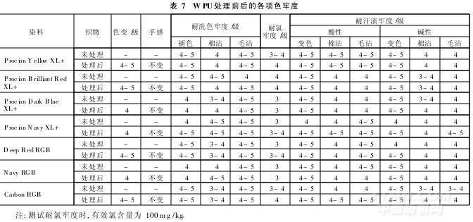 WPU對(duì)其它色牢度影響如表7所示。