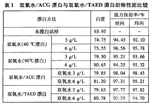 (3)雙氧水/ACG活化體系漂白織物白度高,對纖維損傷小,漂白溫度低,具有節(jié)能的優(yōu)點。∞