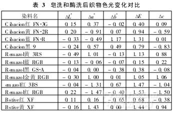 2.4 織物經(jīng)酶洗和皂洗后色光的變化