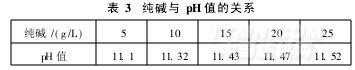 盡量采用對工藝條件依存性小,尤其是對鹽/堿敏感性小的染料。根據(jù)顏色深淺,分段(次)加純堿,使染液pH值緩慢上升,以利于染料的勻染和透染。純堿濃度與pH值之間的關(guān)系見表3。