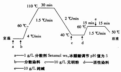 由表3可知,采用分散紅/活性紅一浴二步法染色,織物的K/S值是隨著活性染料濃度的增加而增大的;褪變色牢度及棉沾色牢度基本無變化,說明耐水洗牢度比用分散/直接染料的稍好。而尼龍沾色牢度則隨著活性染料濃度的增加而降低。