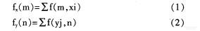 式q~F(m,xi),F(xiàn)(yj,n)分別為緯、經(jīng)紗線方向灰度累加運(yùn)算直方統(tǒng)計值:n為累加次數(shù)。
