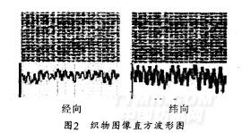 編程直方算法對各類待印織物進(jìn)行檢測試驗.結(jié)果表明織物圖像紋理的經(jīng)紗方向和緯紗方向直方投影均能生成周期及幅度相對穩(wěn)定的直方波形.如圖2所示。