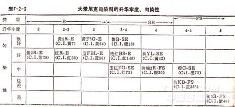 表7-2-3 大愛尼克司分散染料的升華牢度、勻染性
