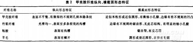 從圖l可以直觀看出,甲殼胺纖維的縱向表面不平整,有微細(xì)的不規(guī)則孔洞和較淺的條紋,但沒有竹漿纖維、粘膠纖維縱向條紋明顯,截面形態(tài)為米粒形,有微細(xì)小孔隙,邊緣有些不規(guī)則的凹凸,但不同于竹漿纖維、粘膠纖維的鋸齒形,截面沒有明顯的皮芯層結(jié)構(gòu)。與羊毛的縱向和截面有明顯的不同。