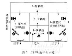該工藝流程的核心是CSBR生化池,CSBR生化池的運(yùn)行條件如下: