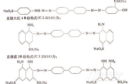 這里所稱的一般直接染料,系指具有磺酸基(  )或羧酸基等水溶性基團,對纖維素纖維具有較大親和力,在中性介質中能直接染色,也能染絲、毛、維綸纖維等,染法簡便的直接染料。但牢度較差,部分染料在染色后,如經固色處理,可提高濕處理牢度。這類染料結構以雙偶氮及多偶氮染料為主,并以聯苯胺及其衍生物占多數。