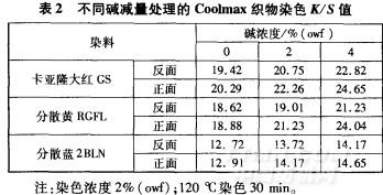 堿減量處理對織物染色深度的影響見表2。