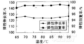 由圖4可知,在溫度65~95℃內(nèi),織物彈性伸長率和彈性回復(fù)率基本沒有影響。