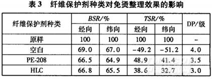 2.3纖維保護(hù)劑種類對免燙整理效果的影響