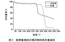 2.3織物阻燃整理前后的TG分析