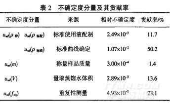 各不確定度分量及其對(duì)合成不確定度的貢獻(xiàn)如表2所示.