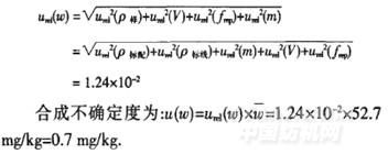 含量測(cè)試結(jié)果的合成相對(duì)不確定度為: