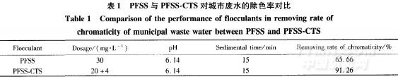 PFSS與PFSS.CTS對城市廢水的除色對比結:果如表1所示。