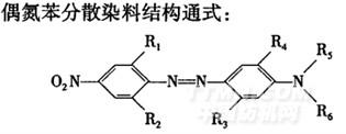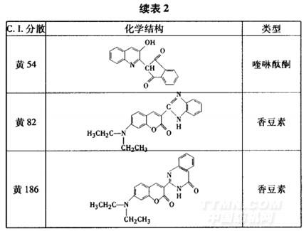 染化料 商品分散染料(部分結(jié)構(gòu)見表1和表2),碳酸鈉、醋酸、醋酸鈉、保險(xiǎn)粉和N,N.二甲基甲酰胺(DMF,均為分析純試劑),硼氫化鈉、亞硫酸氫鈉(均為工業(yè)品),分散勻染劑Dispertex RP-131(臺灣聚益化學(xué)工業(yè)股份有限公司)